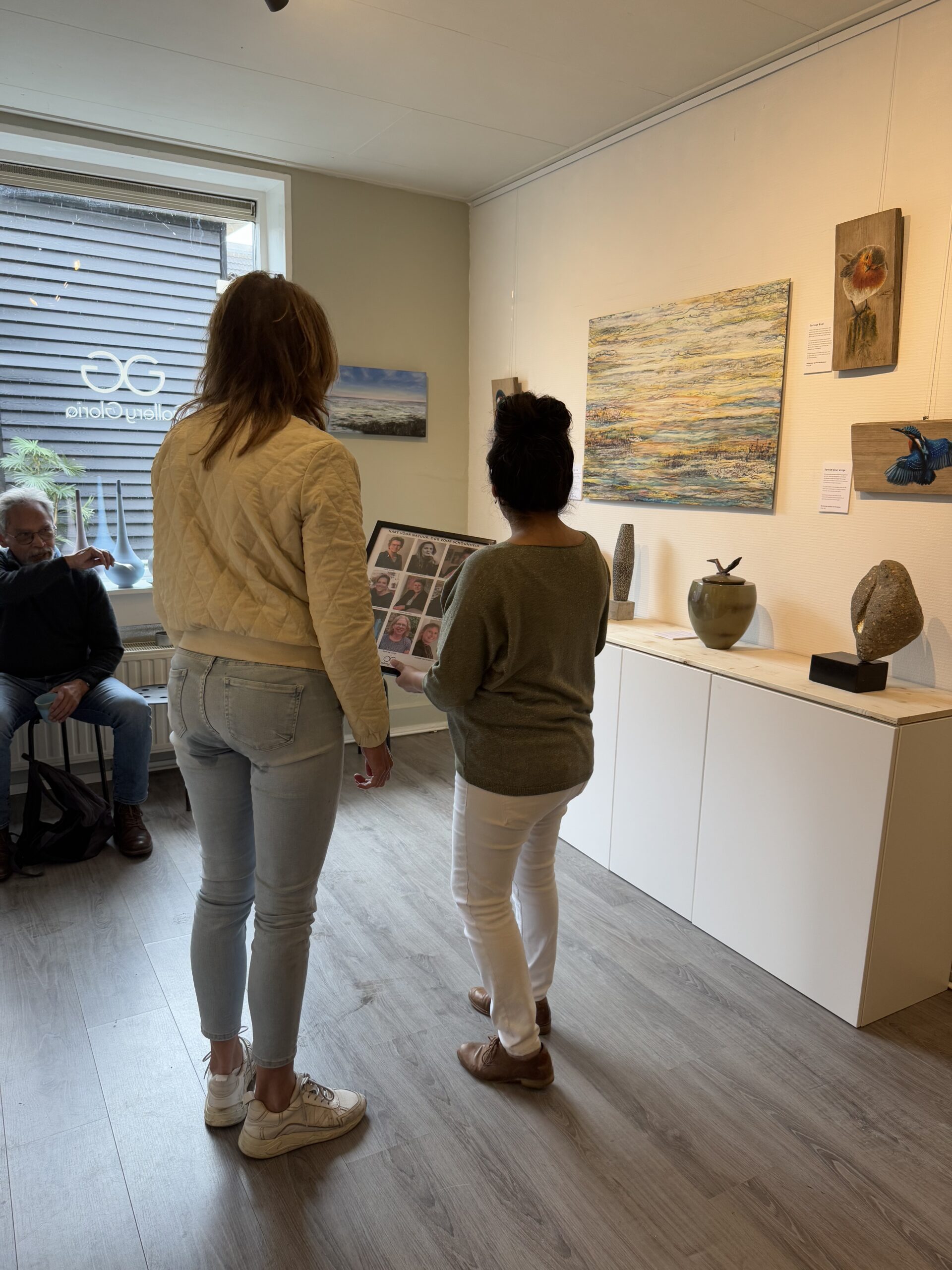 Op woensdag, donderdag en vrijdag werken we op afspraak. Zo kunnen we rust, aandacht en persoonlijke begeleiding bieden. Ideaal wanneer je gericht wilt kijken of advies wilt bij het kiezen van een kunstwerk.
