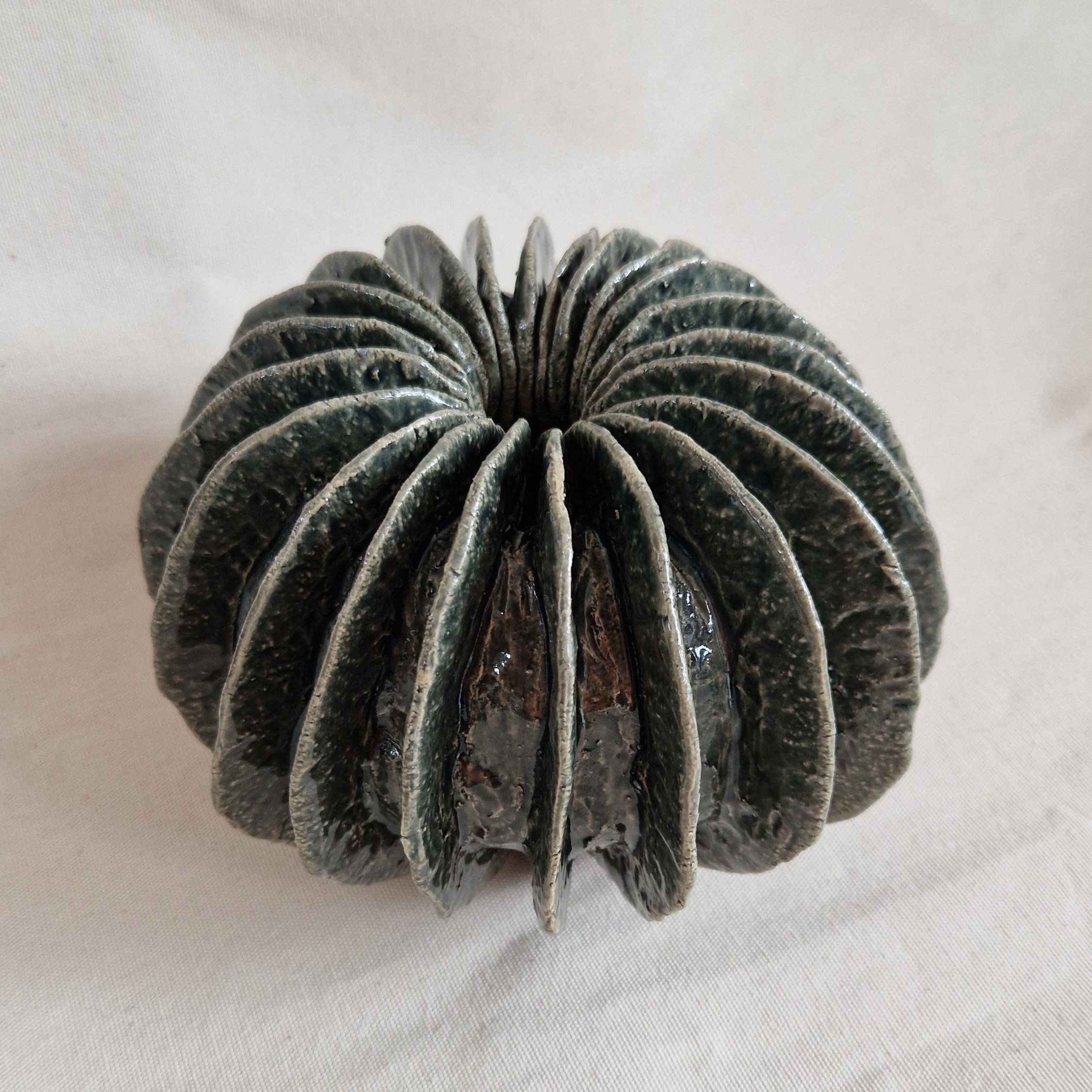 De glazuren ontwikkel ik zelf, zodat ik subtiele kleur verlopen en accenten kan creëren die het organische karakter van mijn werk versterken. Zo ontstaat keramiek waarin de wisselwerking tussen natuur, techniek en vorm centraal staat.