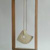 De steen is gemaakt van een Franse kalksteen met veel fossieltjes. Het frame is van geroest metaal. De gepolijste steen hangt aan een leren koord. Dit beeld kan ook buiten.